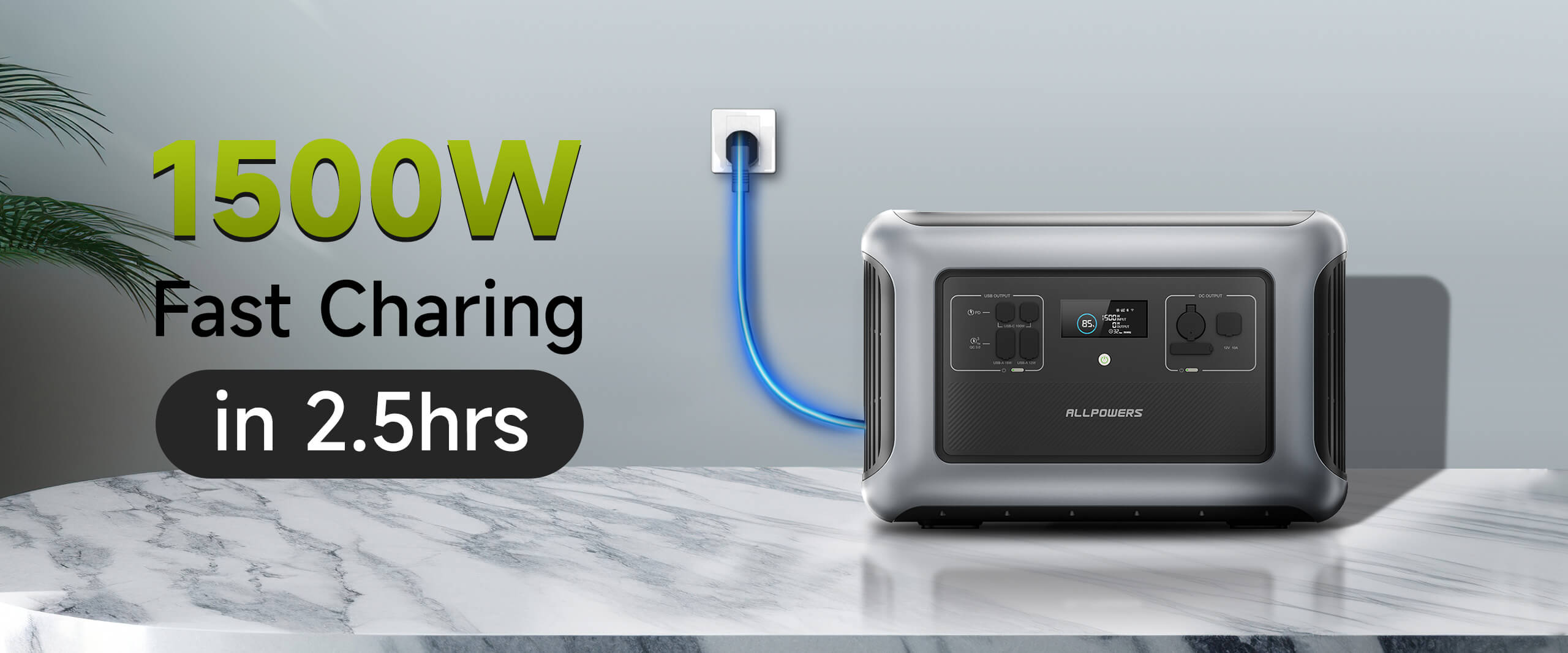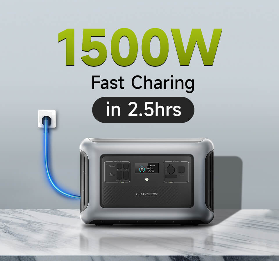 1500W AC high voltage input 0-100% full charge in 2.5 hours;