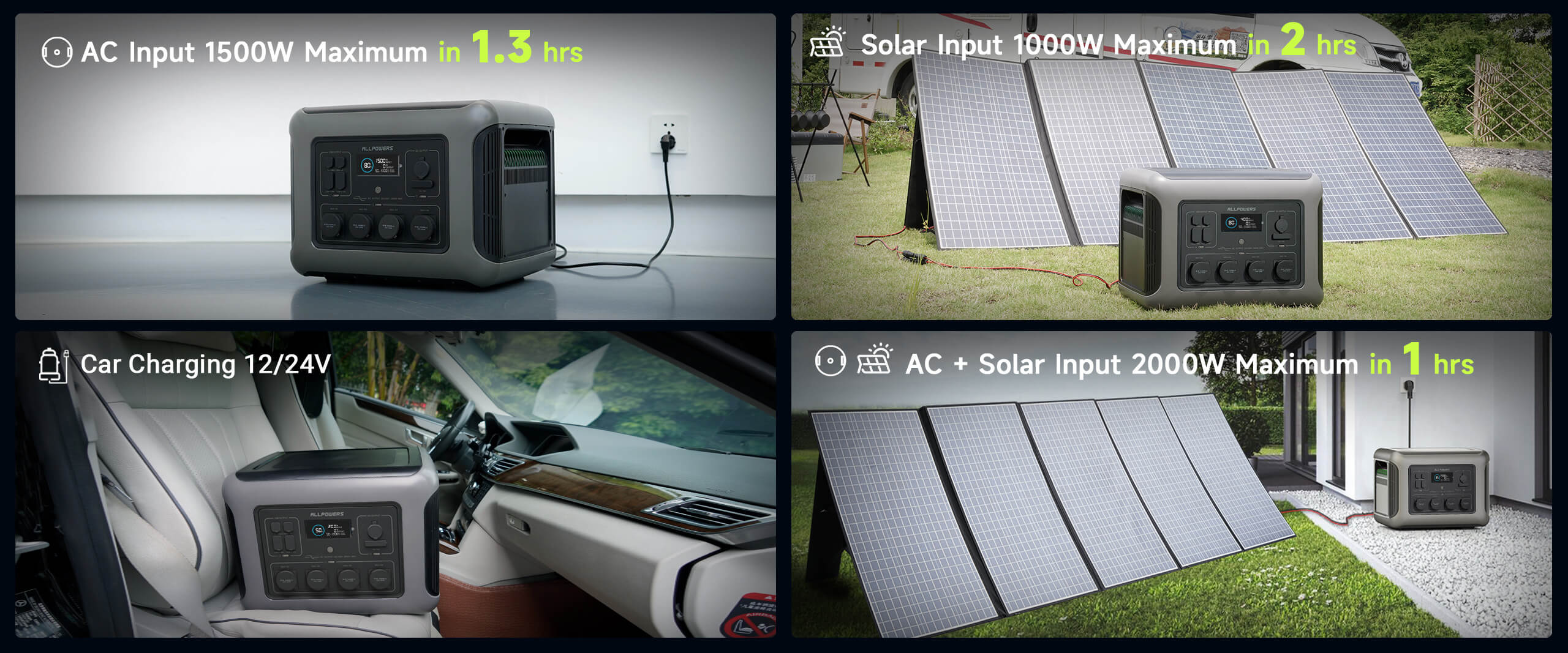 - Maximum 2000W dual input in 1 hour (AC + Solar);