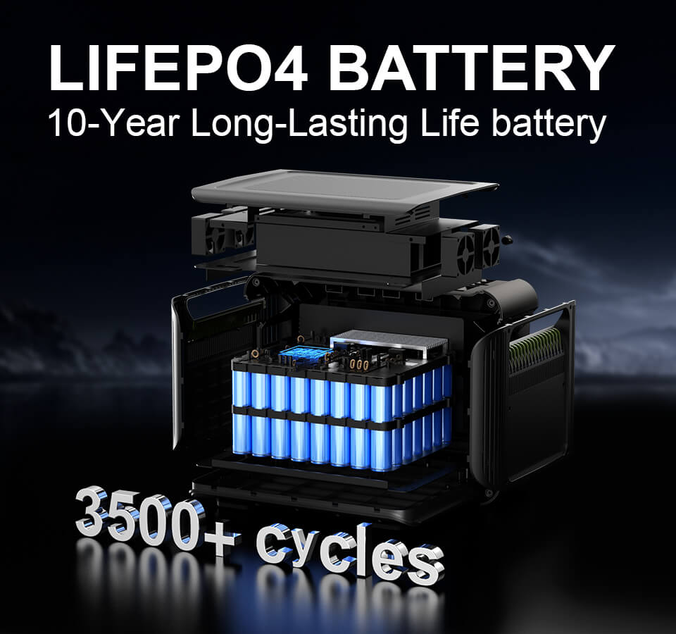 - Long-life LiFeP04 battery with over 3,500 charging cycles;