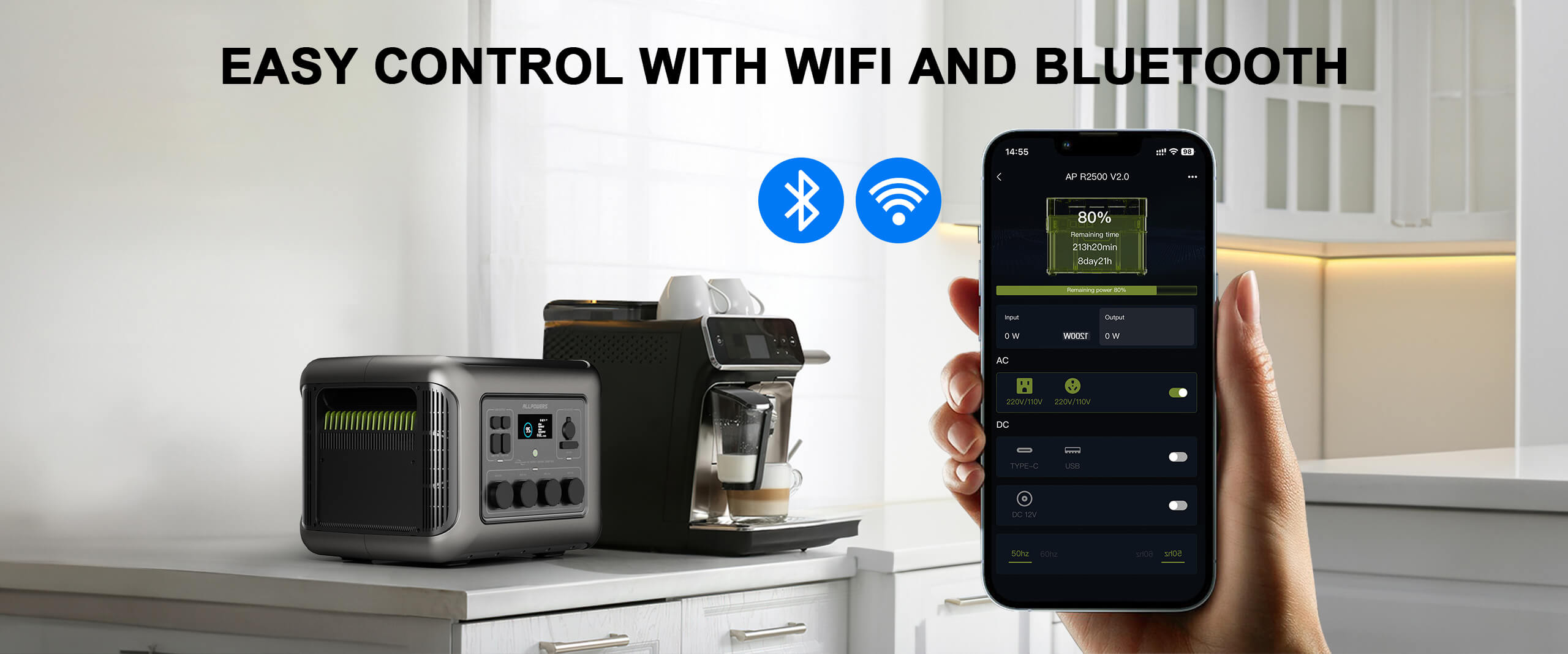 Experience unparalleled performance with its massive 2016Wh capacity and powerful AC output of 2500W (4000W peak). This powerful power station is ready to provide reliable backup power for your home. Whether it's a stormy night or scheduled maintenance, the R2500 has what you need. Keep the lights on, your devices working, and your devices charging.