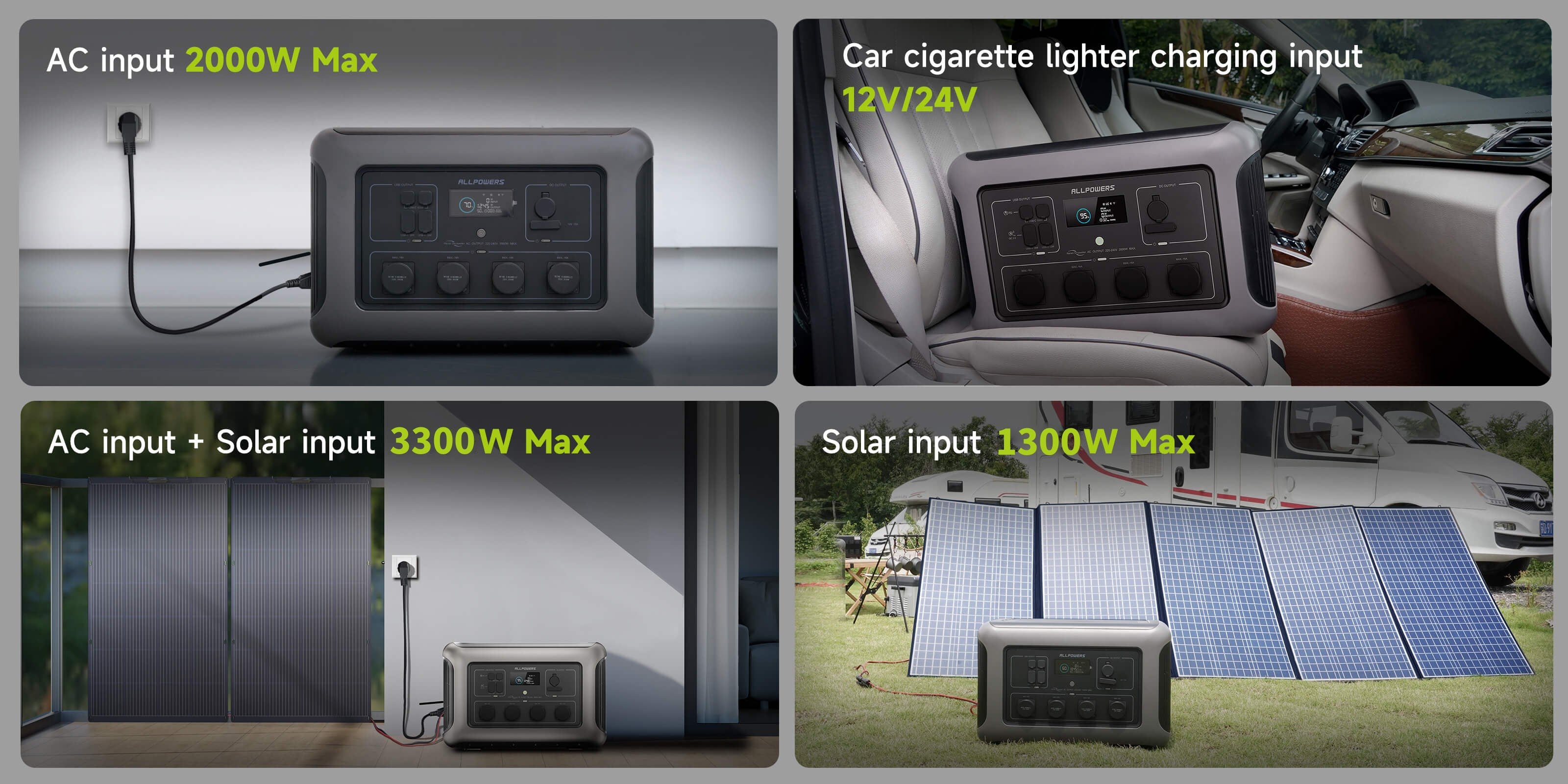 From charging at home to more mobile solutions, we offer four ways to charge your R3500: AC charging, Car charging, solar charging, AC+solar charging.Our AC Charging solution provides fast and efficient power delivery using a standard wall outlet. Perfect for home, office, this method ensures a quick and stable charge for your devices.Our Solar Charging solution lets you tap into renewable energy, perfect for outdoor adventures, emergencies, or sustainable living.