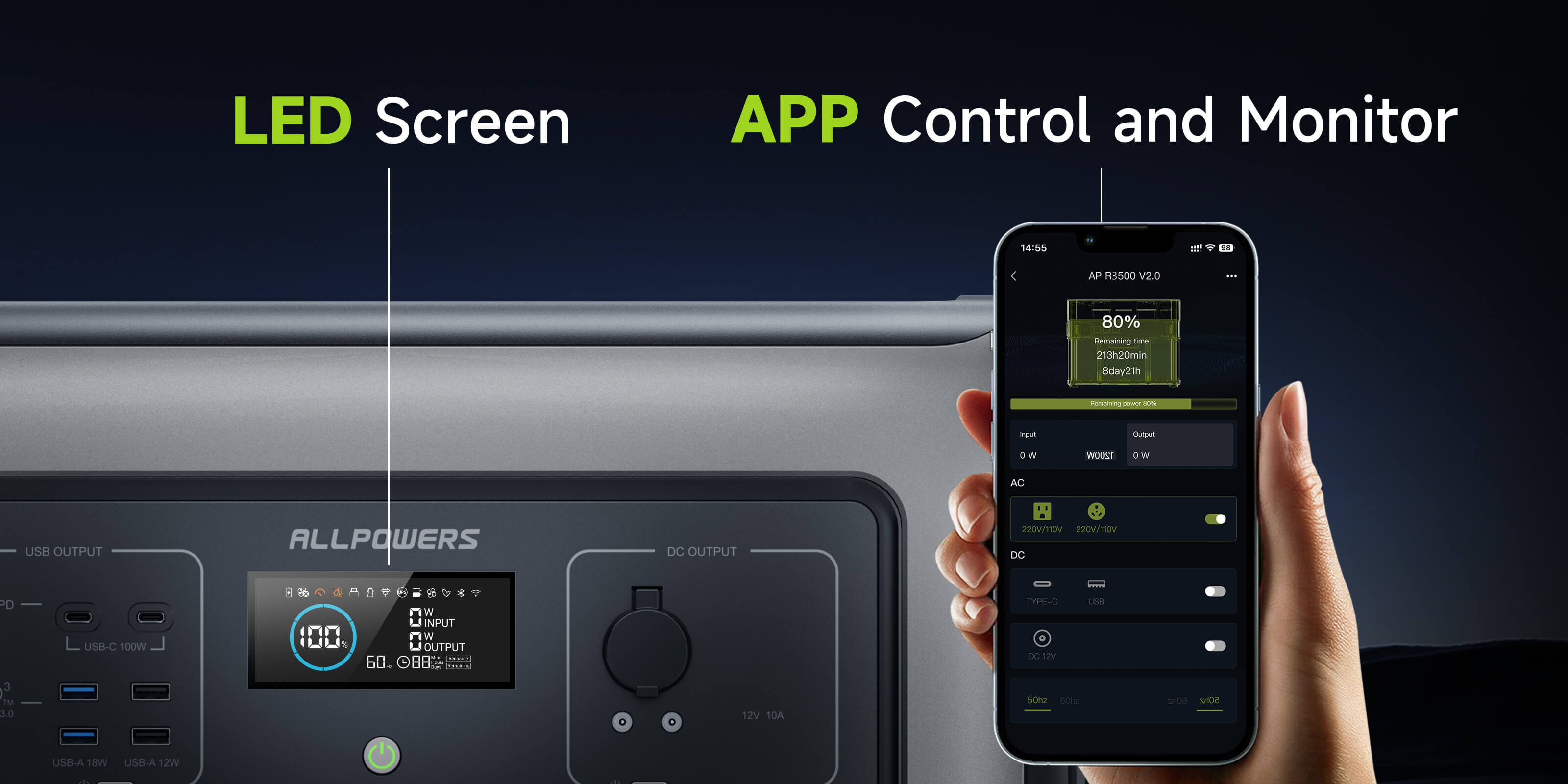 Experience unparalleled performance with its massive 3168Wh capacity and powerful AC output of 3500W (6000W peak). This powerful power station is ready to provide reliable backup power for your home. Whether it's a stormy night or scheduled maintenance, the R3500 has what you need. Keep the lights on, your devices working, and your devices charging.