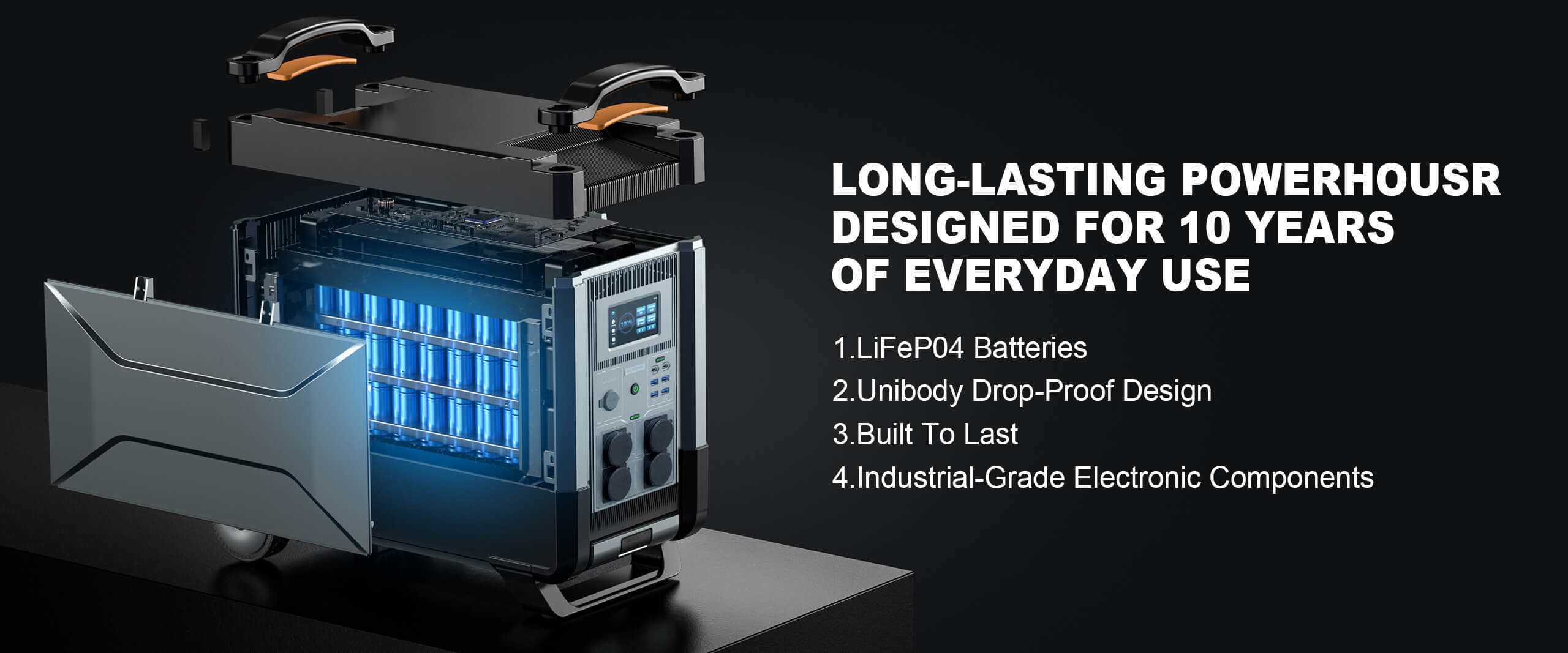 - LiFePO4 battery for over 3,500 life cycles to 80%;