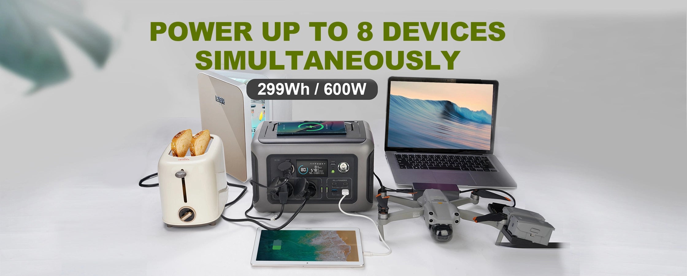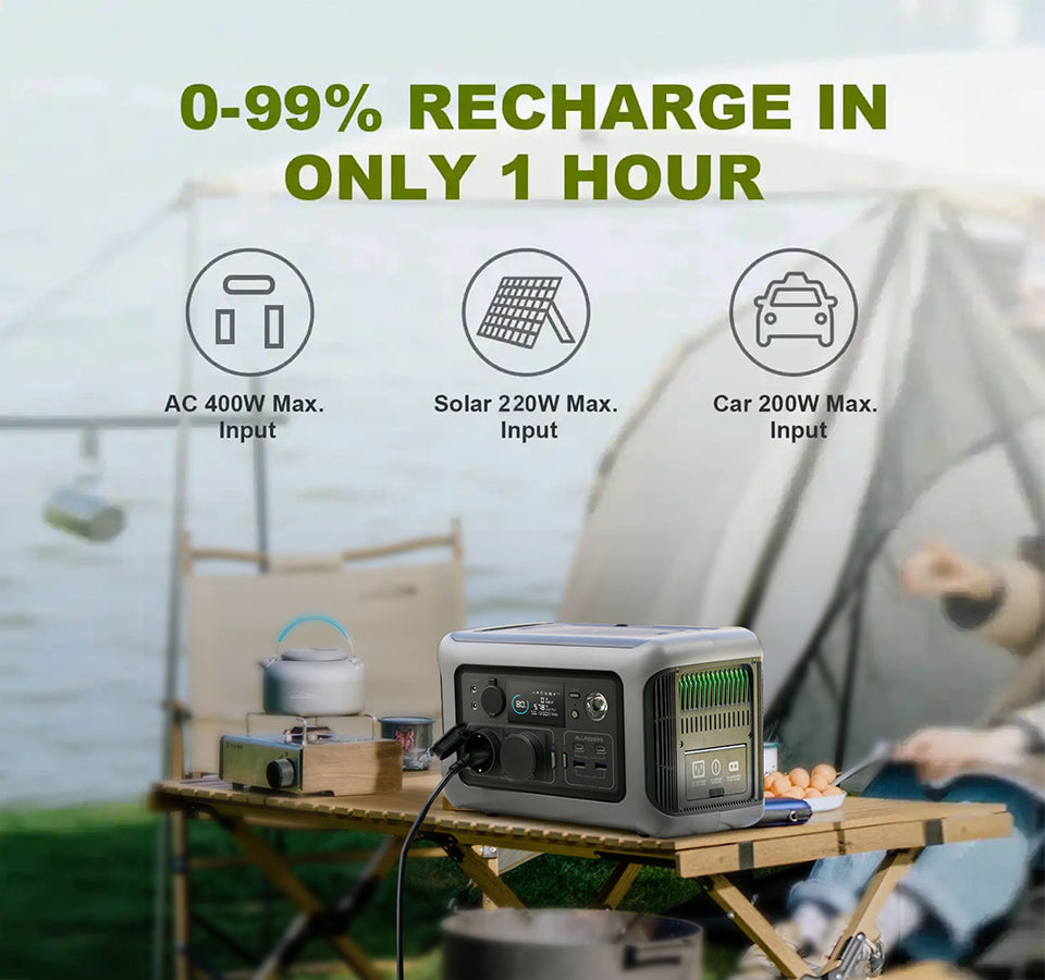 Fully recharge the portable power station with AC wall outlet in only 1 hour with ALLPOWERS fast charging technology, no bulky power brick, only a single cable to recharge R600 at most 400W max. Note: At present, some mobie phone may not be able to perform wireless charging due to the thickness of the camera.