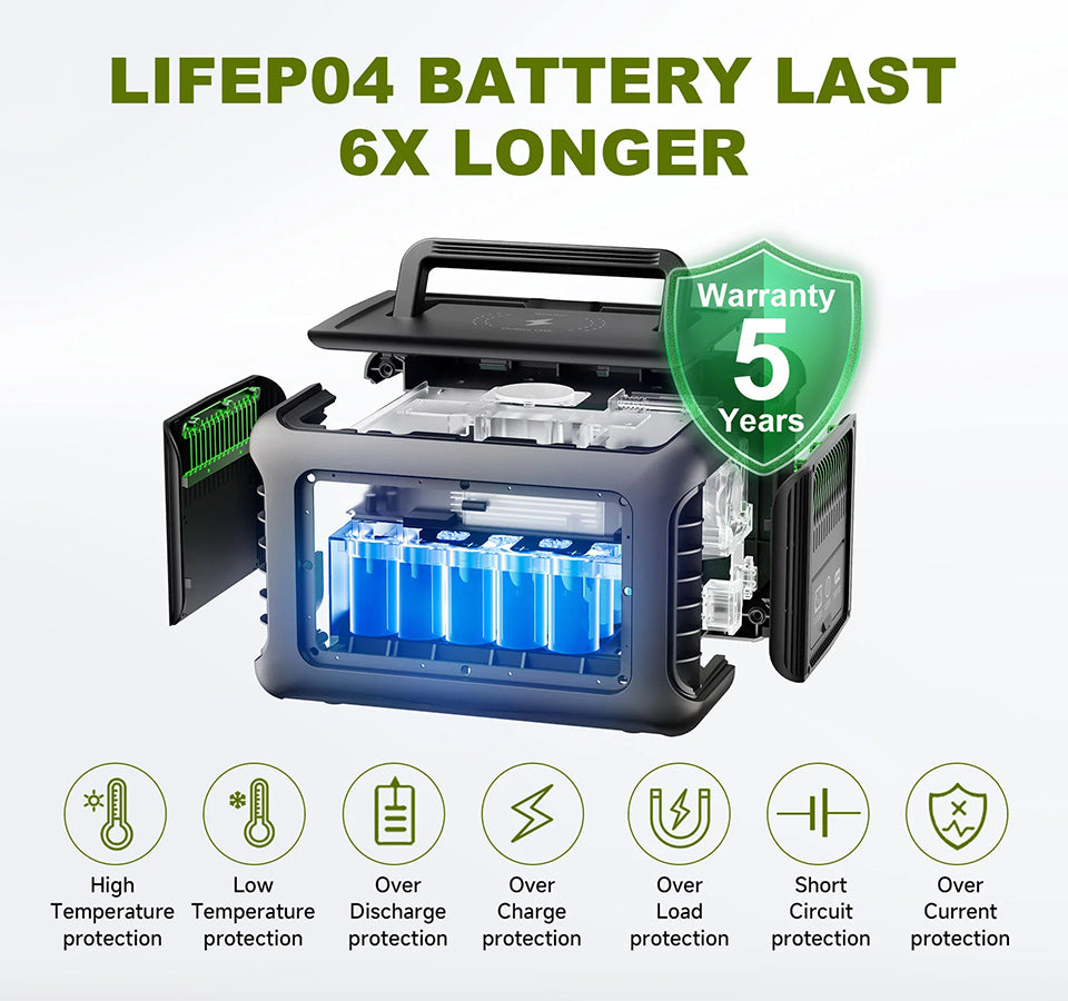 - LiFePO4 Battery with 3500+ Life Cycles to 80%;
