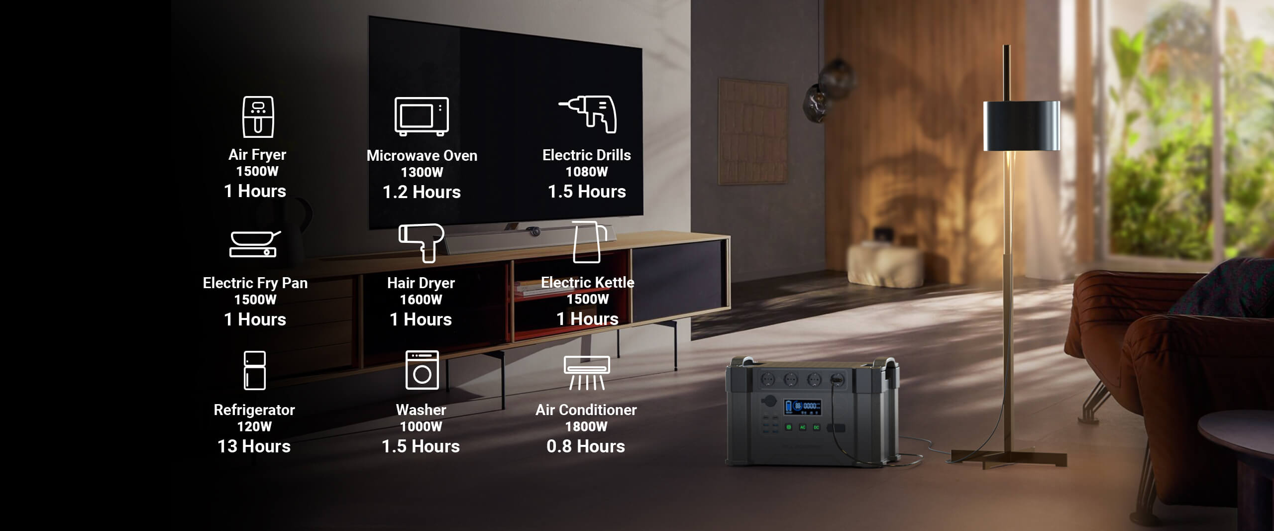 - Power 99% of Electrical Appliances;