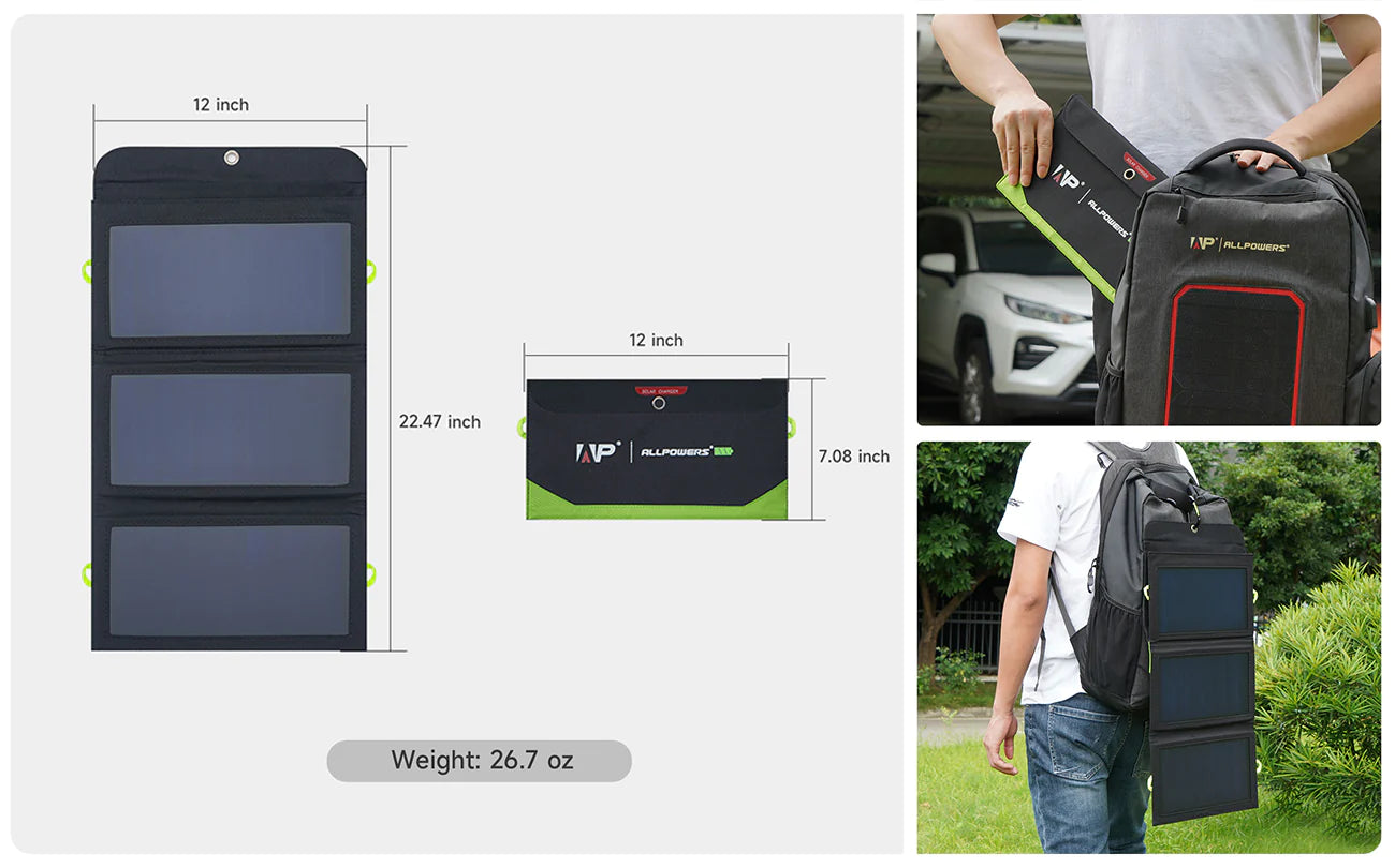 ALLPOWERS SP002 Solar Panel Built-in 10000mAh Battery 5V 21W