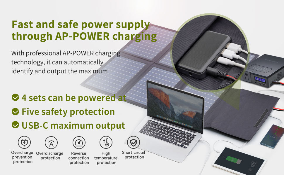 IP67waterproof ETFE Material; - Special ALLPOWERS S200 charging option solar panel;