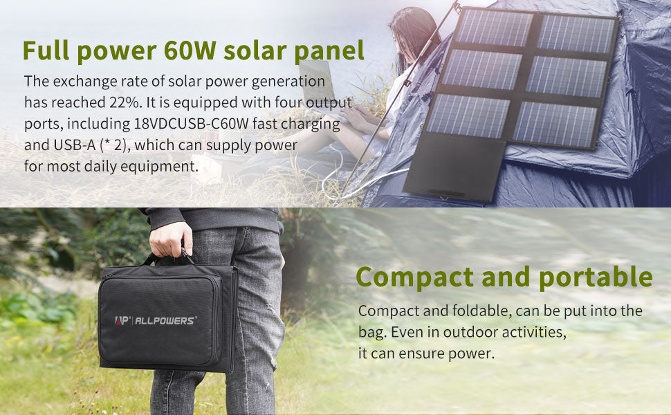 60W solar cell is made from more solid material of good quality, up to 22% efficiency, providing endless power for laptop and other battery under sun.
