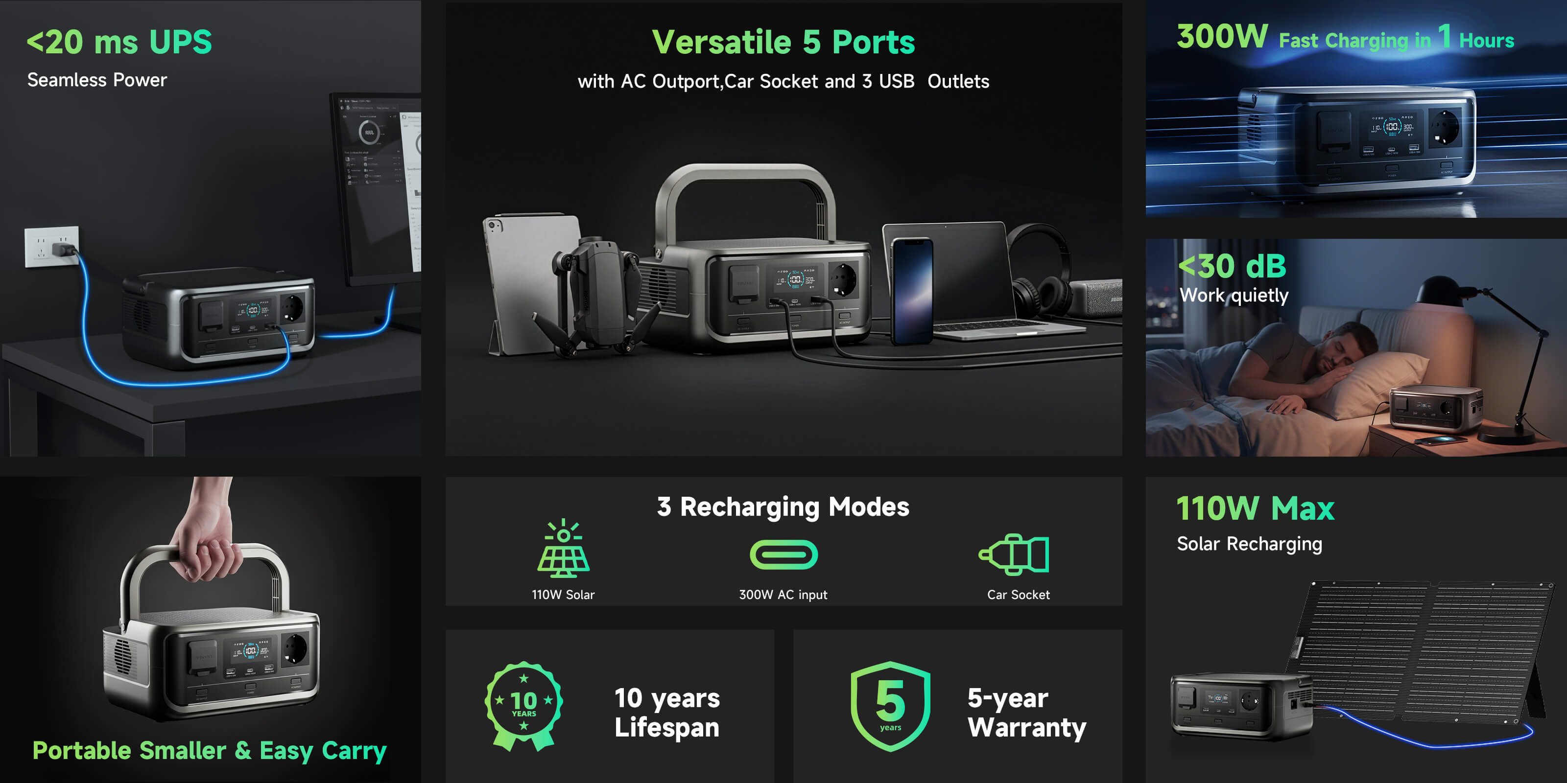 - Fast Charging:Maximum 300W AC input 0-100% within 1 hours;
