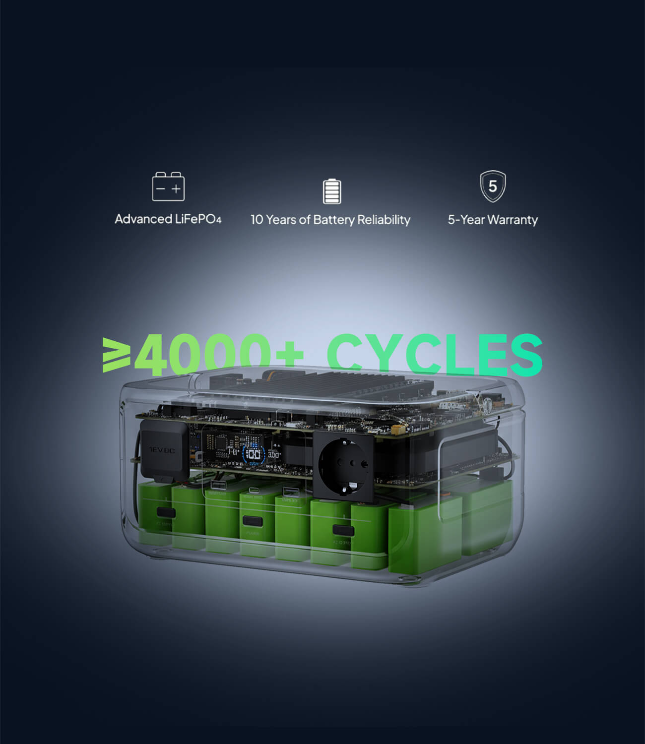 With 4000+ cycles, enjoy reliable power for over a decade of adventures.An industry-leading battery life that lasts for years