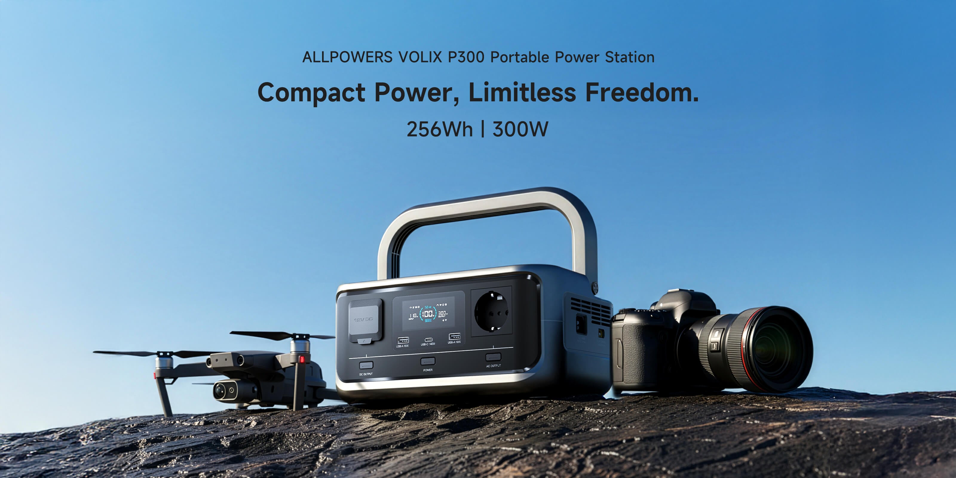 The VOLIX P300 lets you explore a wider world. This 256Wh portable power station can charge your gear even without a power grid. Power your adventures by using solar panels to charge it with sunlight. Whether you're picnicking or on a road trip, it provides reliable, quiet, and emission-free power.