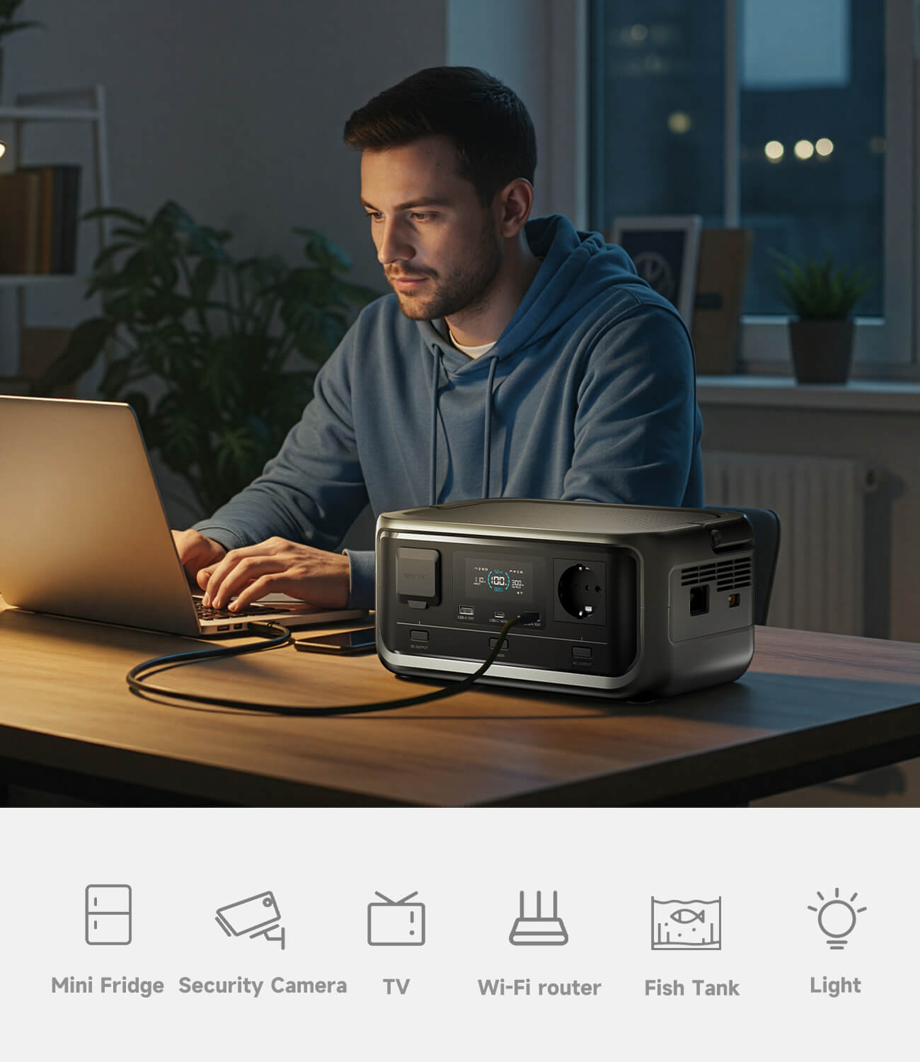 - Ample Capacity & High Power:With a 256Wh capacity and a 300W (600W peak) pure sine wave AC outlet;